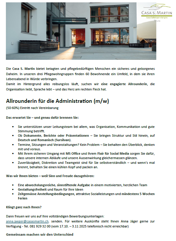 Herzlich willkommen in der Casa s. Martin in Trun